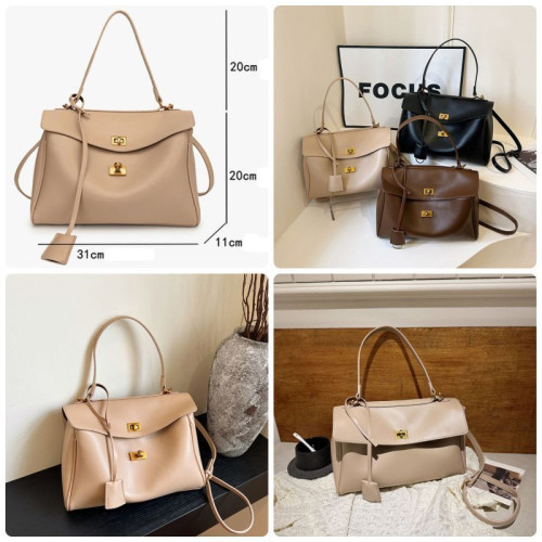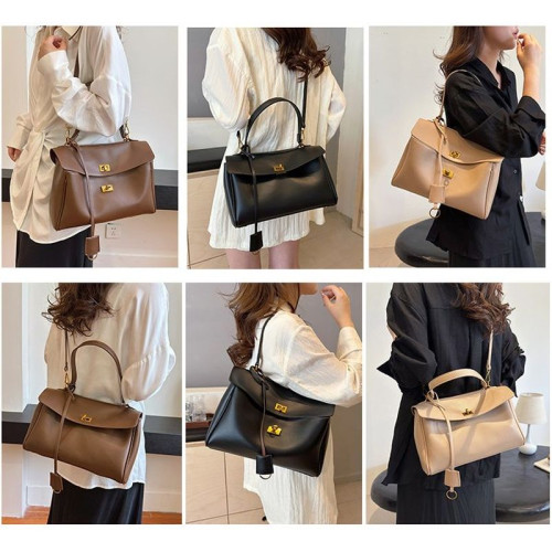 Внутри: два самостоятельных отделения с карманом на молнии для телефона, документов и различных мелочей. Сумка закрывается на крышку-клапан с поворотным замком в двух вариантах (подробнее на фото). Модель хорошо держит форму. В комплекте удлинённый ремень, регулируемый по высоте. На дне сумки расположены металлические ножки. Ровное устойчивое дно позволяет фиксировать положение сумки на поверхности. Сумку можно носить на запястье, на плече, через плечо, на локте или в руке.