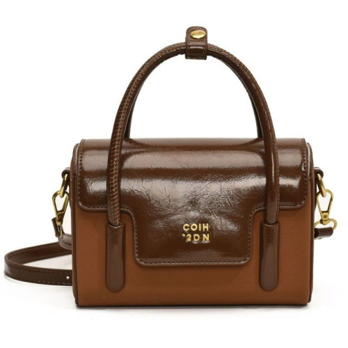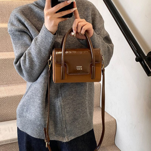 Небольшая удобная сумочка изготовлена из искусственной кожи.