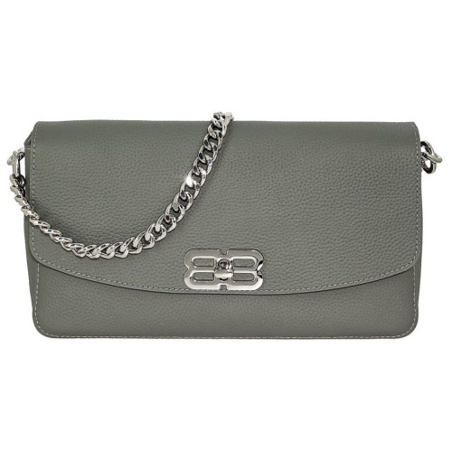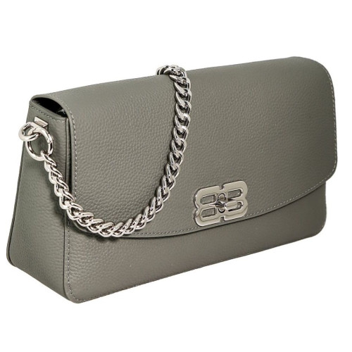 Внутри: одно отделение и сумка-вкладыш. По бокам расположены карманы на молнии и без для телефона, документов и различных мелочей. Сумка закрывается на крышку-клапан с поворотным замком. В комплекте две съёмные ручки: одна из натуральной кожи, вторая ручка-цепочка. У сумки имеется удлинённый кожаный ремень, регулируемый по высоте.