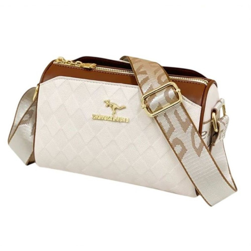 Внутри: три самостоятельных отделения. Среднее внутреннее отделение закрывается на молнию, а два боковых закрываются на крепкие кнопки-магниты. В комплекте широкий удлинённый ремень, регулируемый по высоте. Ремень сумки позволяет носить её в руке, на запястье, на локте, на плече и через плечо.