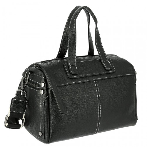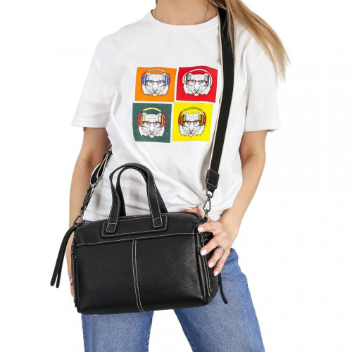 Внутри: одно большое отделение. На боковых стенках расположены карманы для документов, телефона и мелочей - два на молнии и два открытых. С внешней стороны на задней стенке карман на молнии. На боковых стенках два глубоких кармана на молниях. В комплекте два удлинённых, регулируемых по высоте, наплечных ремня - один из натуральной кожи, второй из высокопрочного текстиля. Сумка закрывается на молнию.