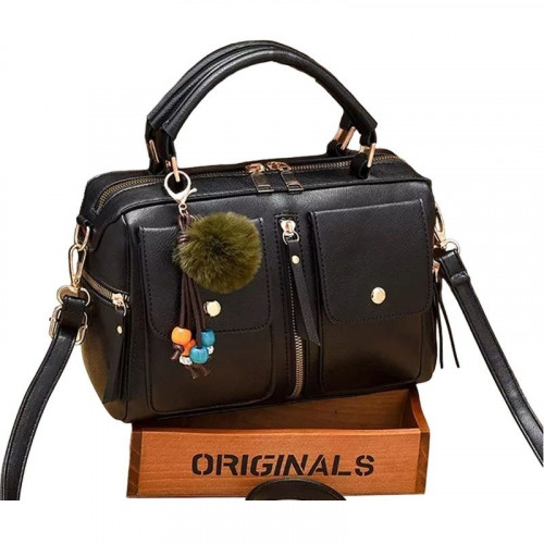 Внутри: одно большое отделение. По бокам расположены карманы на молнии и без для документов, телефона и различных мелочей. На внешней задней стенке расположен карман на молнии. Сумка закрывается на молнию. В комплекте удлинённый ремень, регулируемый по высоте. На дне сумки расположены металлические ножки, предохраняющие её от потёртостей. Сумка хорошо держит форму.