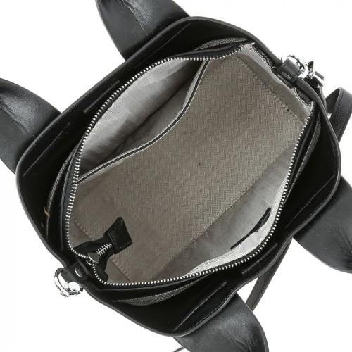 Внутри: три отделения - среднее на молнии и два на крепких кнопках магнитах. На боковых стенках среднего отделения имеются карманы: один на молнии и один открытый. На дне сумки расположены металлические ножки, предохраняющие от потёртостей. В комплекте удлинённый, наплечный ремень.Сумка закрывается на молнию.