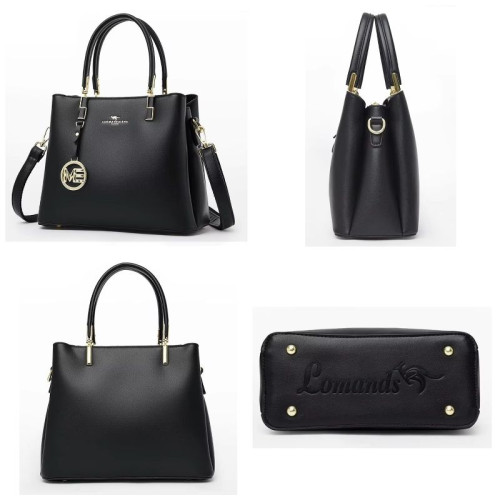 Внутри: три самостоятельных отделения, среднее на молнии. По бокам центрального отделения расположены карманы на молнии и без для телефона, документов и различных мелочей. Боковые отделения закрываются на крепкие кнопки-магниты. На дне сумки расположены металлически ножки. Модель хорошо держит форму. В комплекте удлинённый ремень, регулируемый по высоте.
