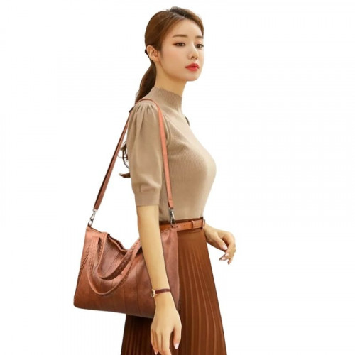Сумка изготовлена из мягкой фактурной искусственной кожи хорошего качества, внешне не отличимой от натуральной.