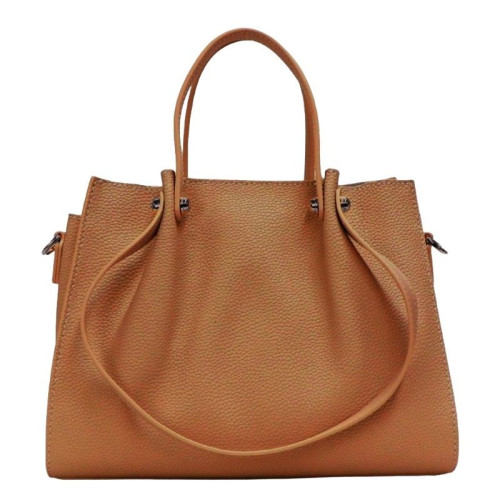 Внутри: три самостоятельных отделения. По бокам центрального отделения расположены карманы на молнии и без для документов, телефона и различных мелочей. Среднее отделение закрывается на молнию. По бокам центрального отделения расположены два отделения, закрывающихся на крепкие кнопки-магниты. В комплекте удобные короткие и длинные ручки-ремешки для ношения сумки в руке, на локтевом сгибе и на плече.