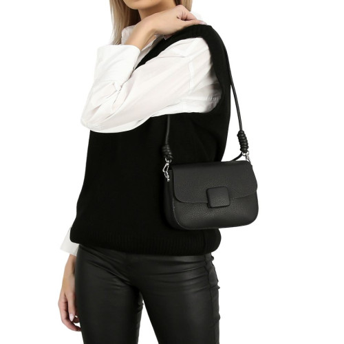Внутри: два самостоятельных отделения, одно из которых закрывается на молнию. На боковых стенках расположены карманы для мелочей: один на молнии и один открытый. В комплекте съёмная ручка и удлинённый наплечный ремень. Модель хорошо держит форму. Сумка закрывается на молнию и крышку-клапан с крепким замком-магнитом.