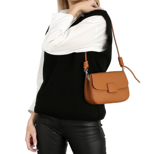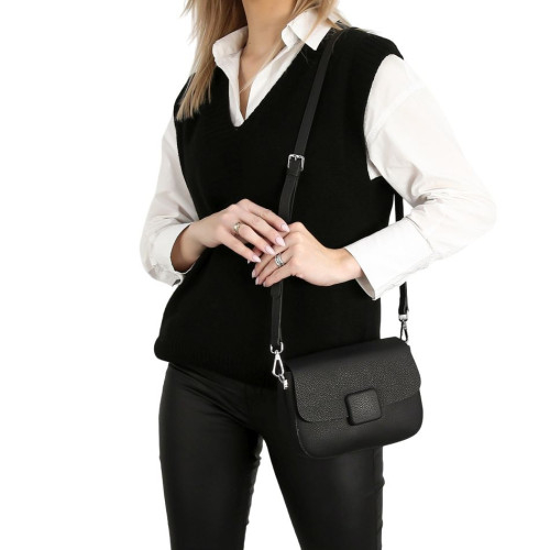 Внутри: два самостоятельных отделения, одно из которых закрывается на молнию. На боковых стенках расположены карманы для мелочей: один на молнии и один открытый. В комплекте съёмная ручка и удлинённый наплечный ремень. Модель хорошо держит форму. Сумка закрывается на молнию и крышку-клапан с крепким замком-магнитом.