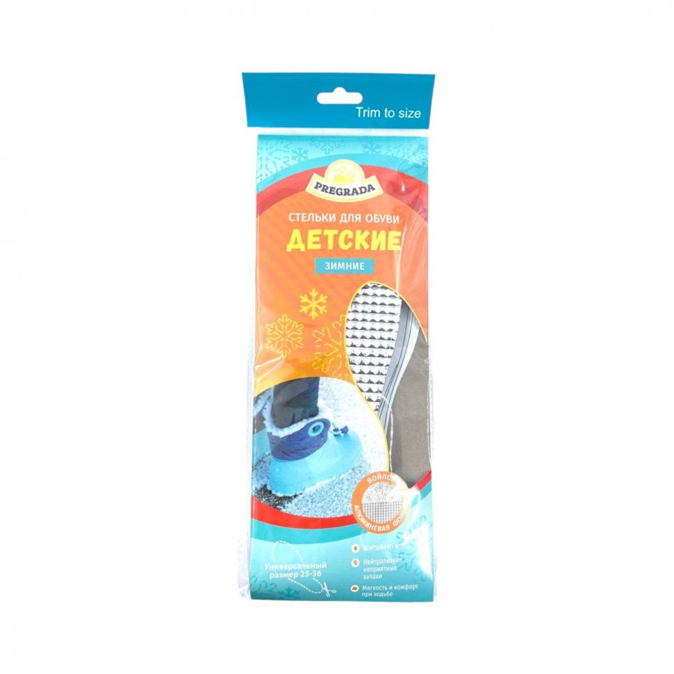 Стельки для обуви PREGRADA детские зимние (войлок+фольга) универсальные 25-36 размер