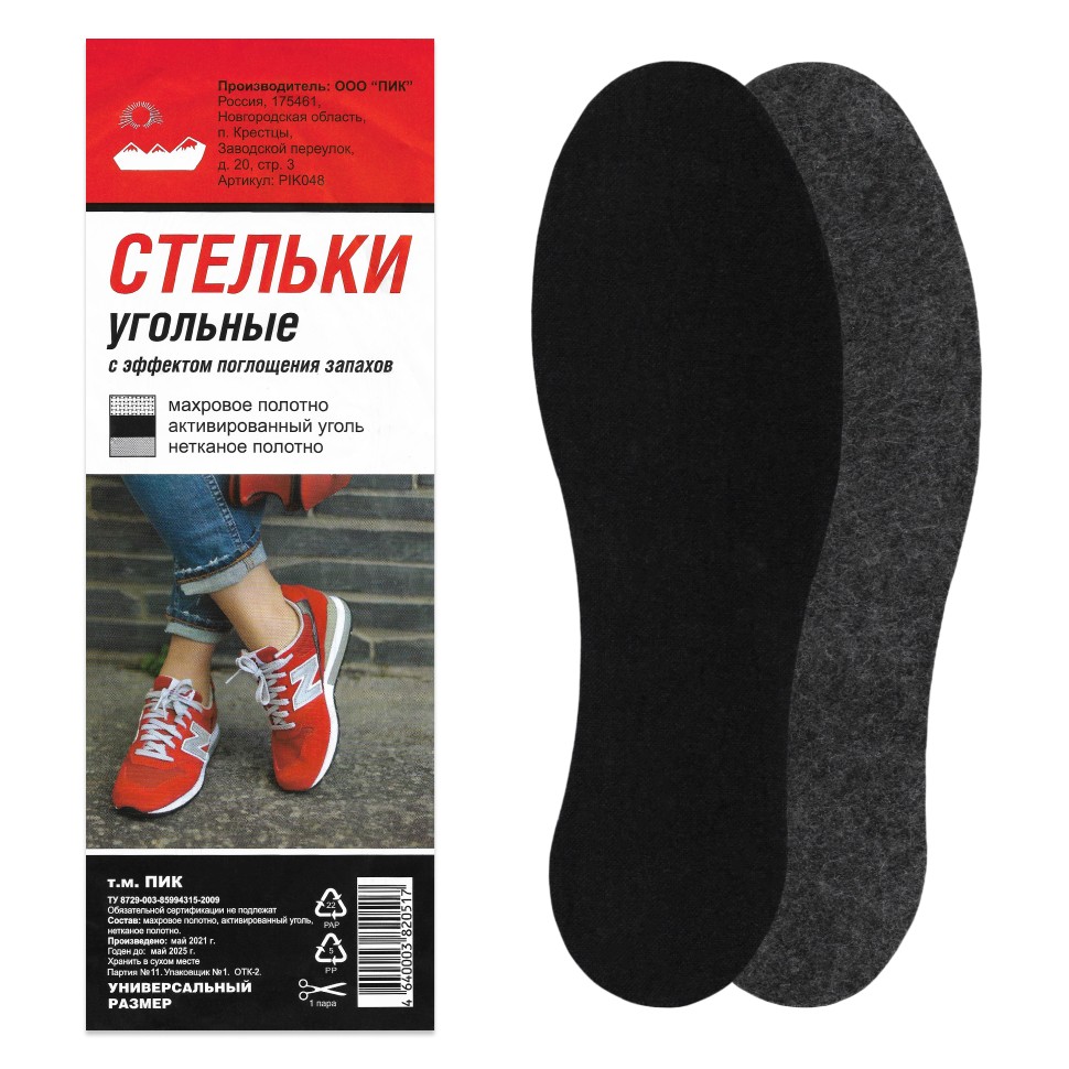 Стельки состоят из нескольких слоев: махрового полотна, активированного угля и нетканного полотна.