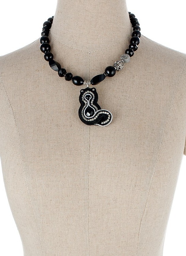 Агат, пирит, хрустальное стекло, сутажное волокно, кристаллы Preciosa, латунь. Гальваническое покрытие: родий.натуральные камни