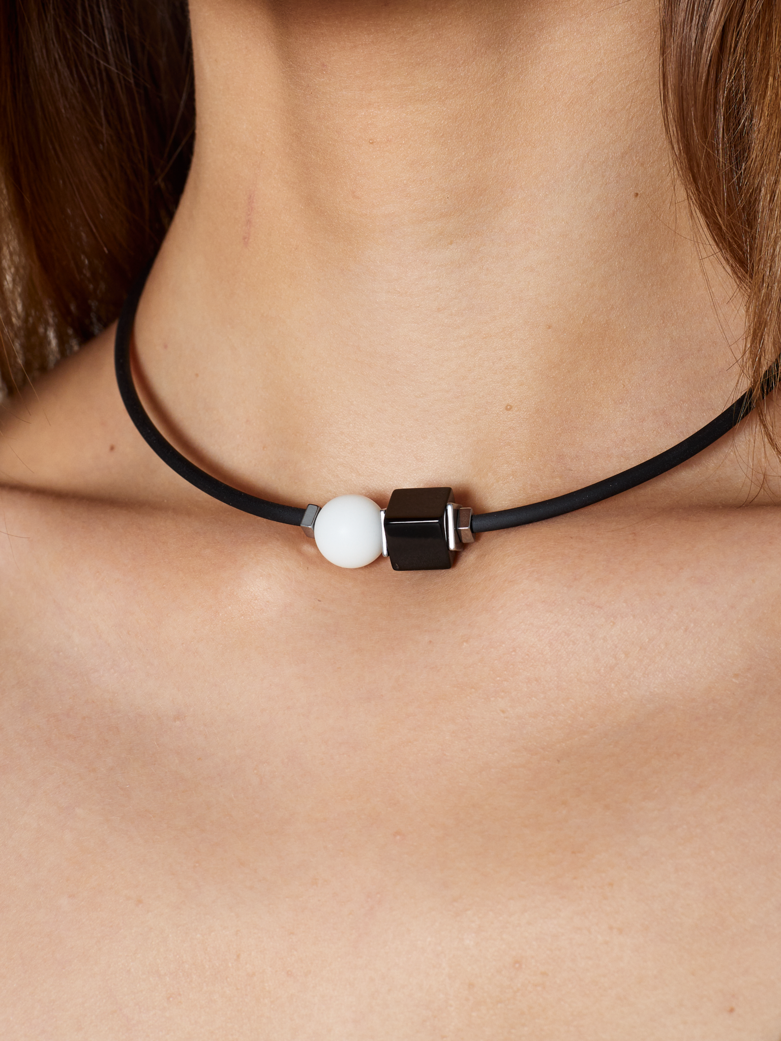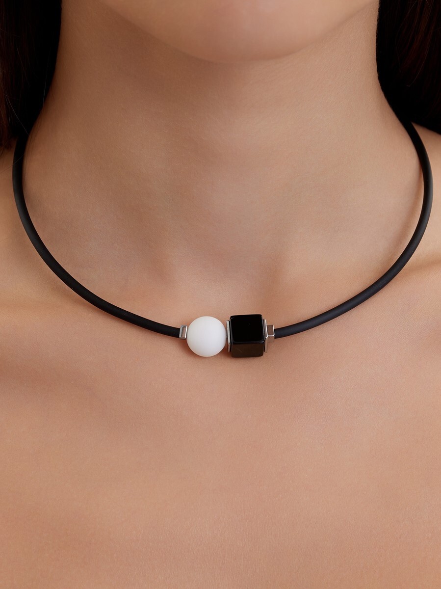 Агат, оникс, каучук, ювелирный сплав. Гальваническое покрытие: родий.