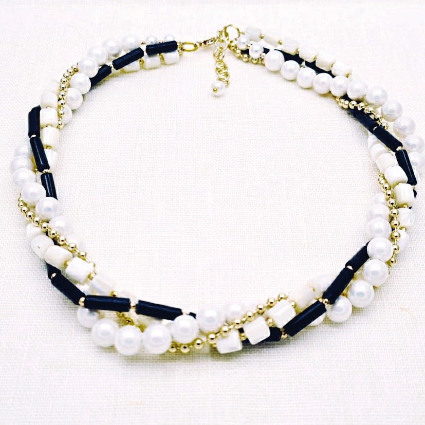 Размер: Удлинительная цепочка поможет скорректировать размер посадки, длина колье 46 - 51 см, ширина1,8 см, жемчуг майорка 8мм, агат 13*4 мм, перламутр 6 мм.