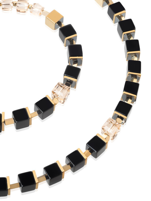 Оникс, хрустальное стекло, кристаллы Preciosa, гематит, ювелирный сплав. Гальваническое покрытие: золото.