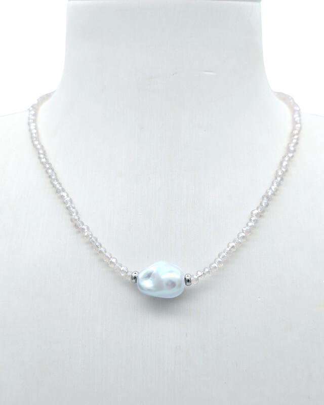 Размер: Длина колье 38+5 см. Хрустальное стекло 3 мм, жемчуг Майорка 11*15 мм.