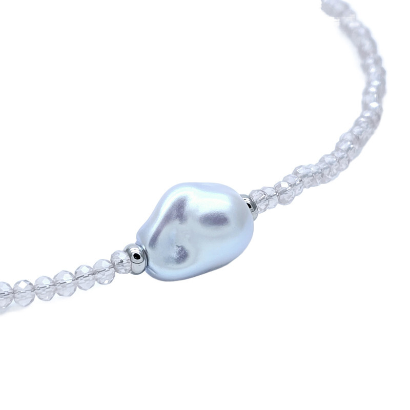 Хрустальное стекло, жемчуг Майорка, ювелирный сплав. Гальваническое покрытие: родий.