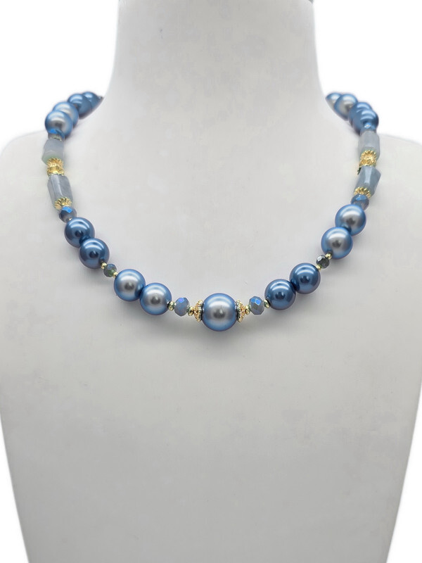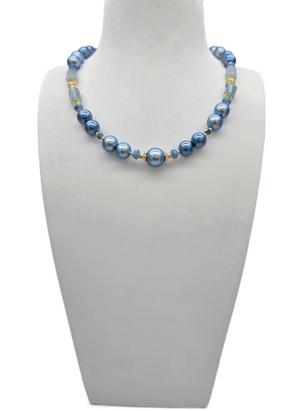 Размер: Длина колье 41 - 47 см. Жемчуг Майорка 10;12 мм, ларимар 6*11 мм.