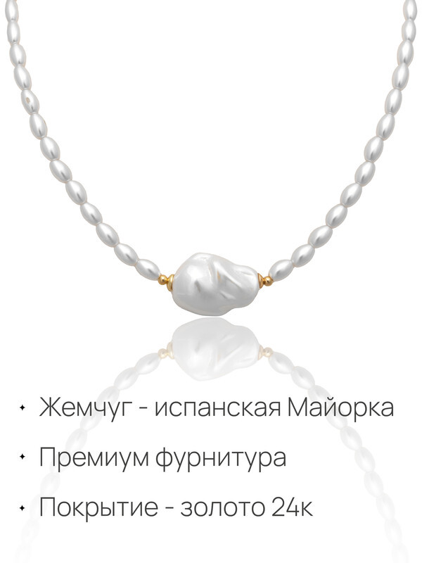 Размер: Длина колье 43 - 48 см. Жемчуг Майорка 4*6 мм, 15*20 мм.