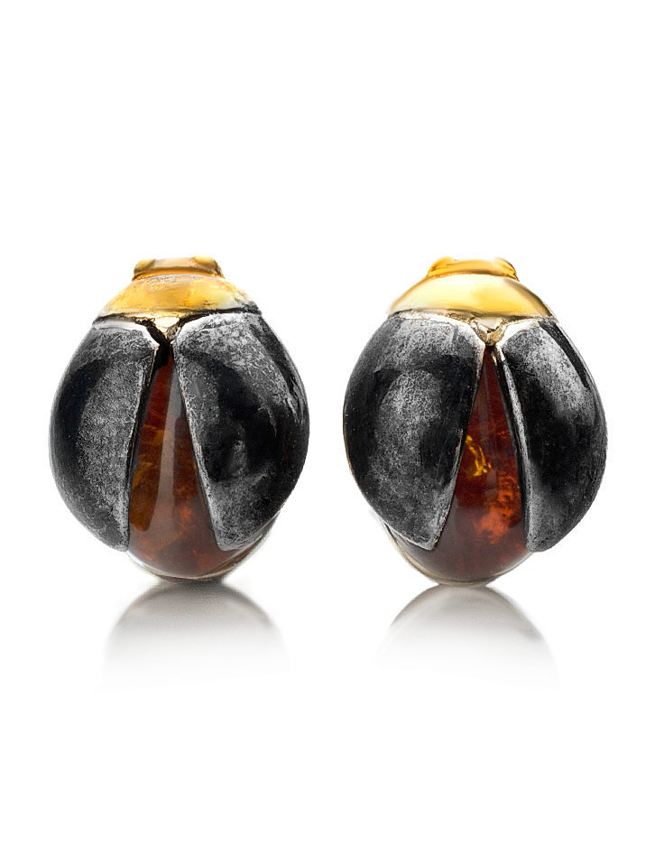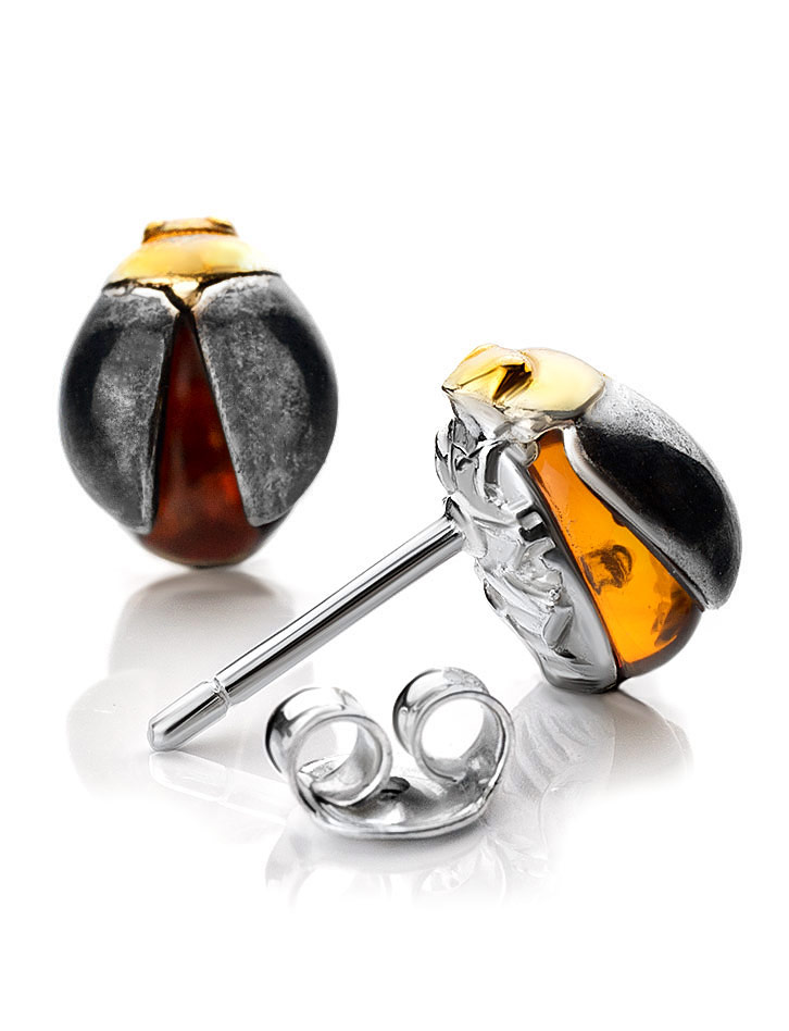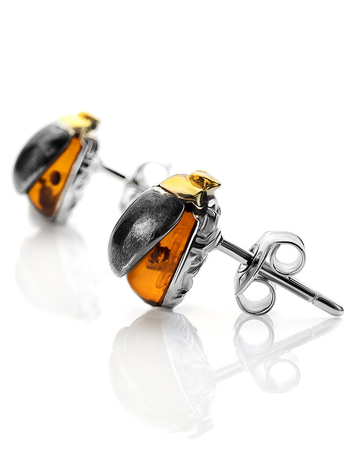 Аккуратные серьги-гвоздики из янтаря коньячного цвета «Скарабей»