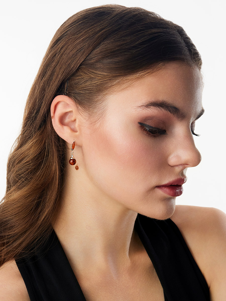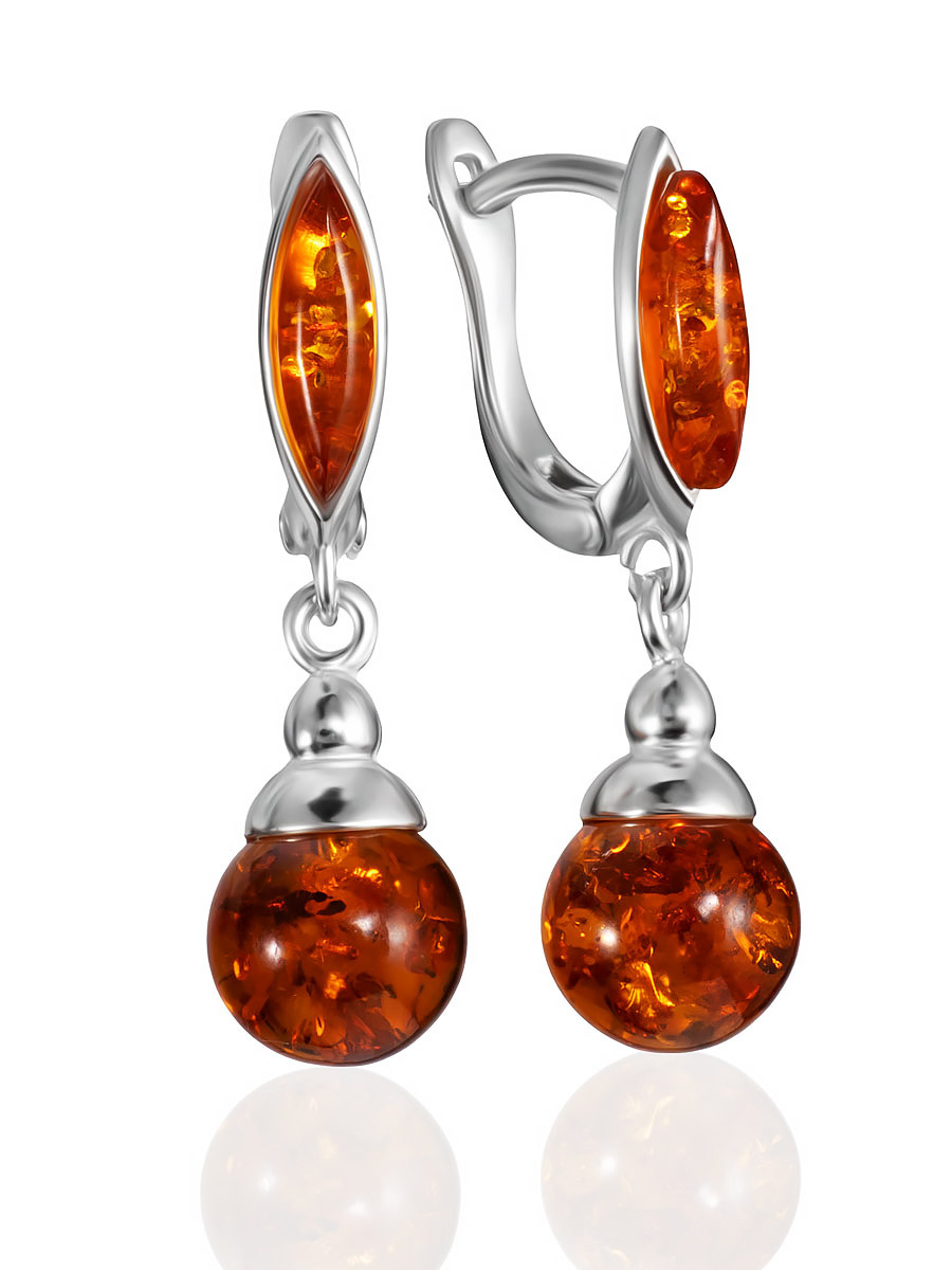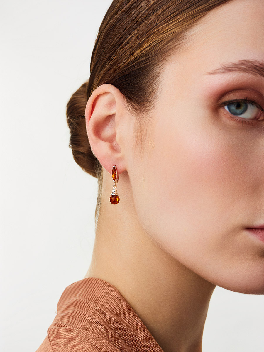 Аккуратные серьги из натурального балтийского янтаря коньячного цвета «Флора»