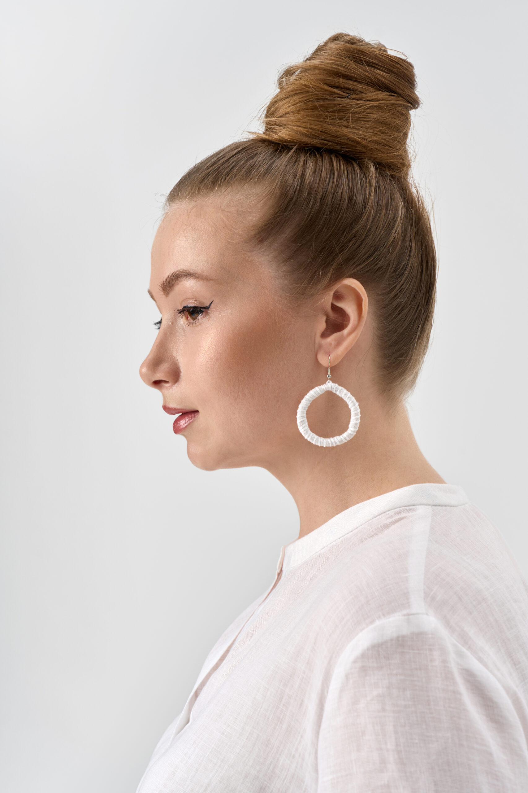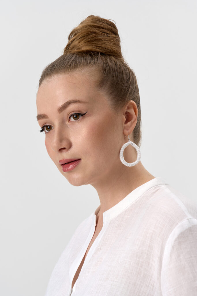 Серьги кольца текстильные. Диаметр 4см. Состав лён, вискоза.