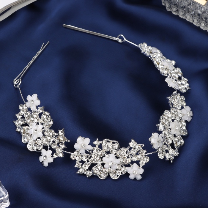 Аксессуар для волос «Леона», цветочный, 26 см, серебро