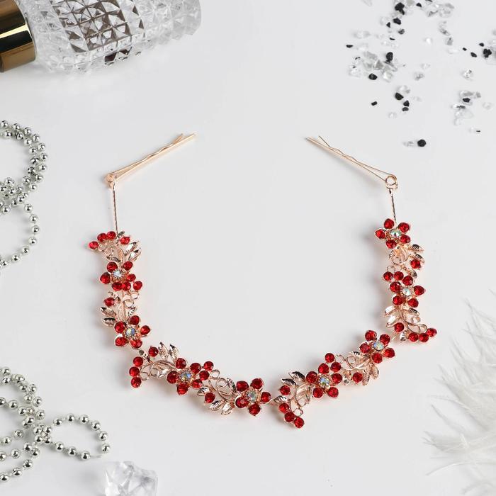 Аксессуар для волос «Сюзанна», красные цветы, 23 см, золото