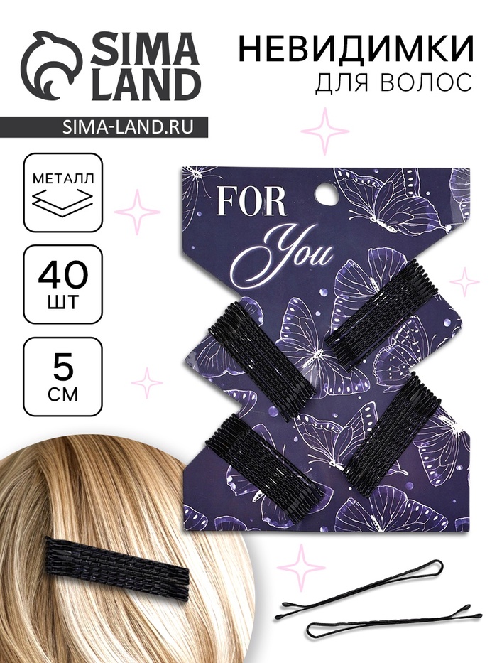 Невидимки для волос 40 шт. «Для тебя» 5 см