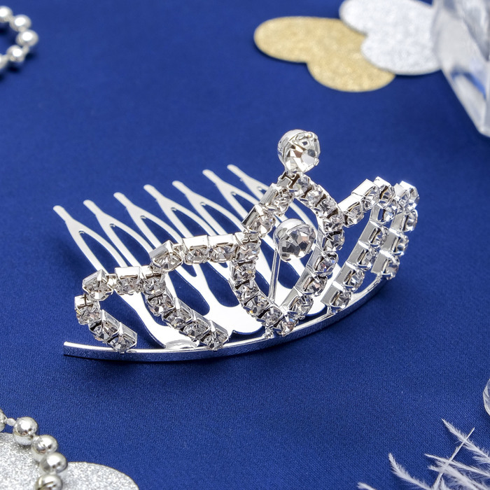 Праздничный блеск страз дополнит сияние счастливых глаз и сделает настроение возвышенным. Диадема для волос «Соня», 6×4 см, серебро — особое украшение для особого случая.