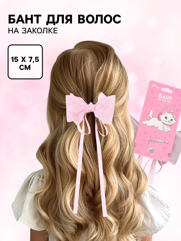 Бантик для волос с пышными лентами на прочной заколке. Элегантный аксессуар с изображением персонажа мультфильма в стиле принцесс. Создает волшебные образы для повседневных прогулок и праздников. Мягкая фиксация, безопасный материал, не спутывает волосы. Идеальный подарок для юных модниц.