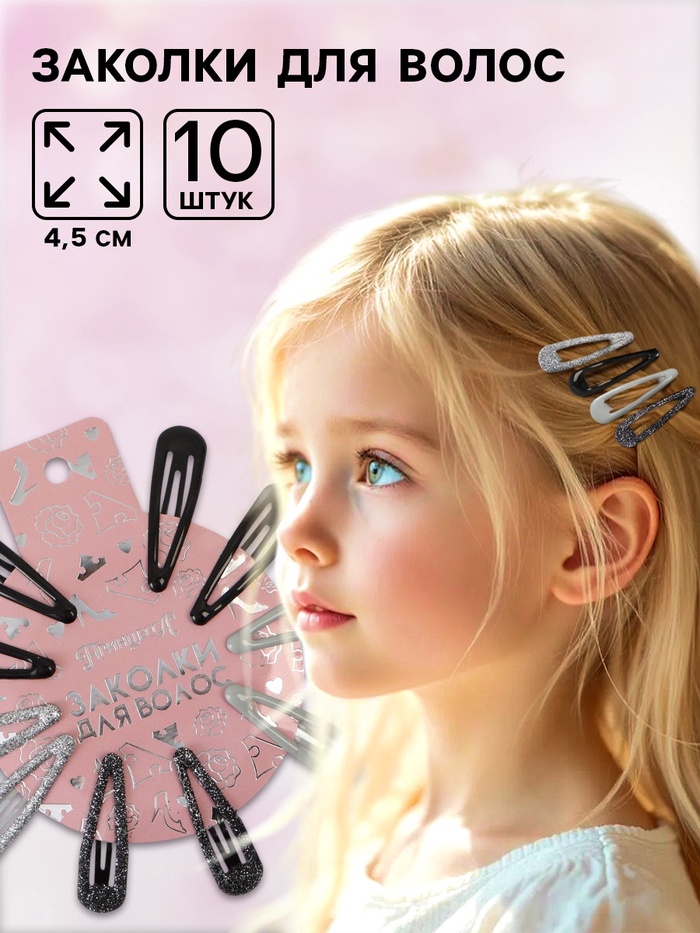 Набор заколок для волос — 10 штук на нежной подложке — идеальный выбор для юной модницы! Надёжный зажим бережно фиксирует пряди, не повреждая волосы. Идеальны для детского сада, праздников, утренников или повседневного образа. Пусть каждая причёска сияет нежностью и стилем!