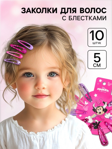 Набор заколок для волос — 10 штук в стиле Минни Маус — нежный, сияющий и невероятно модный! В комплекте заколки в четырёх волшебных оттенках: блестящий розовый, блестящий фиолетовый, розовый и омбре от розового к фиолетовому. Надёжные зажимы бережно фиксируют пряди, не повреждая волосы, а стильная подложка делает набор удобным для хранения и идеальным для подарка. Идеален для утренников, праздников, фотосессий или повседневного образа. Пусть каждая причёска сияет элегантностью, добротой и диснеевским шармом!