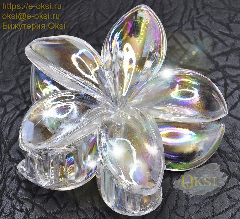 Стильная заколка - краб '' Лилия '' из прозрачного пластика с перламутровым блеском. Размер 7 см х 7 см
