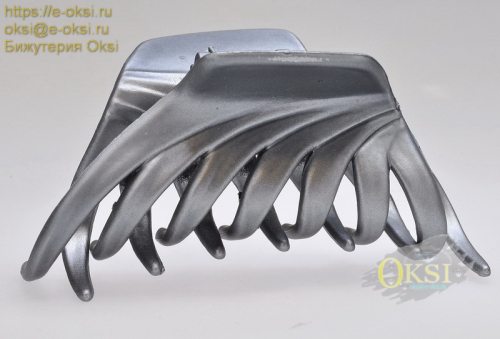Стильная заколка - краб из качественного каучука серебристого оттенка. Длина 8 см.