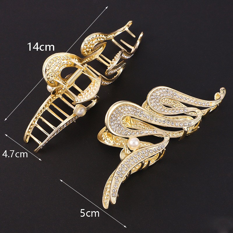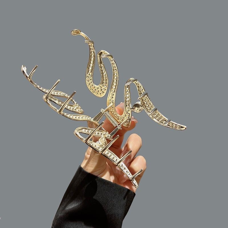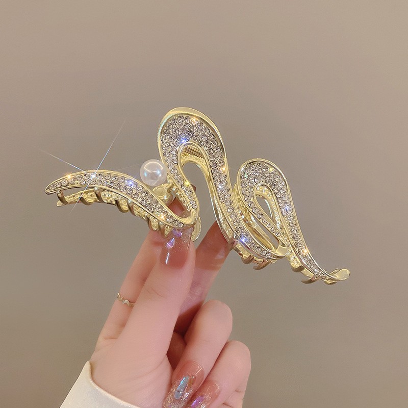 Краб для волос металлический блестящий Змейка с Жемчужиной, 11 см.