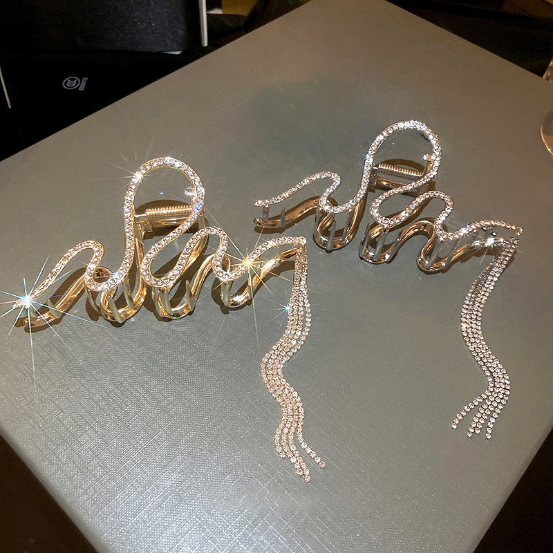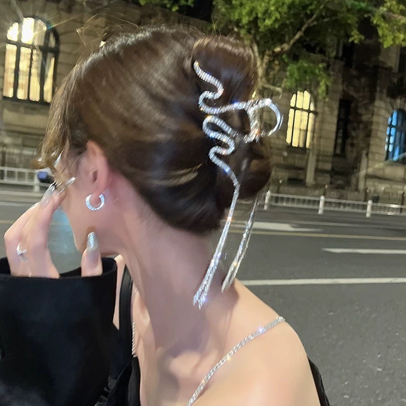 Краб для волос металлический сверкающий Змейка с Цепочками. Цвет: СЕРЕБРО