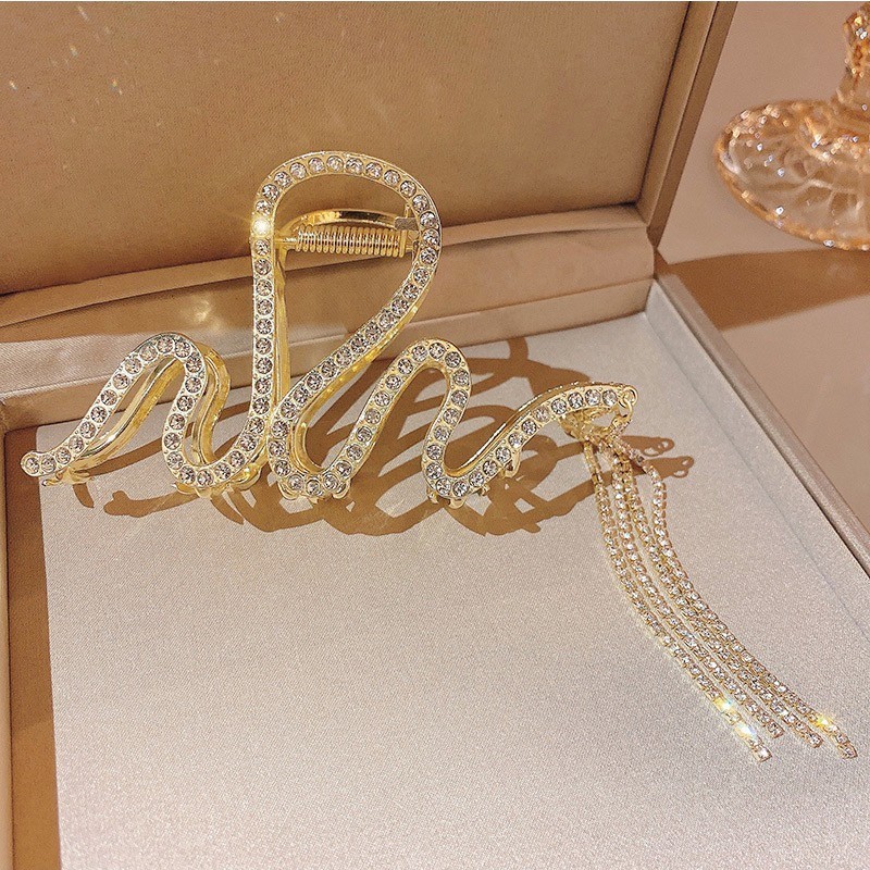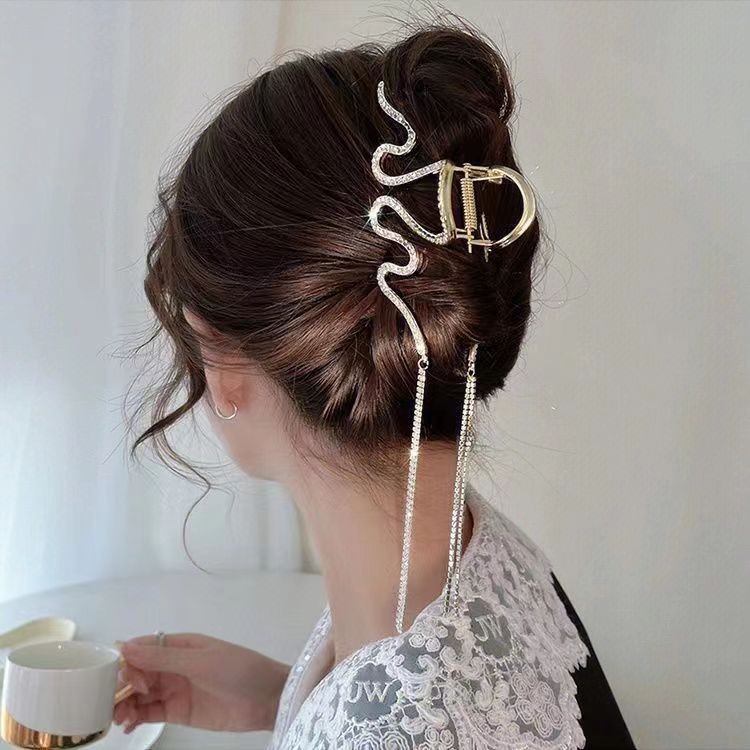 Краб для волос металлический сверкающий Змейка с Цепочками Цвет: ЗОЛОТО