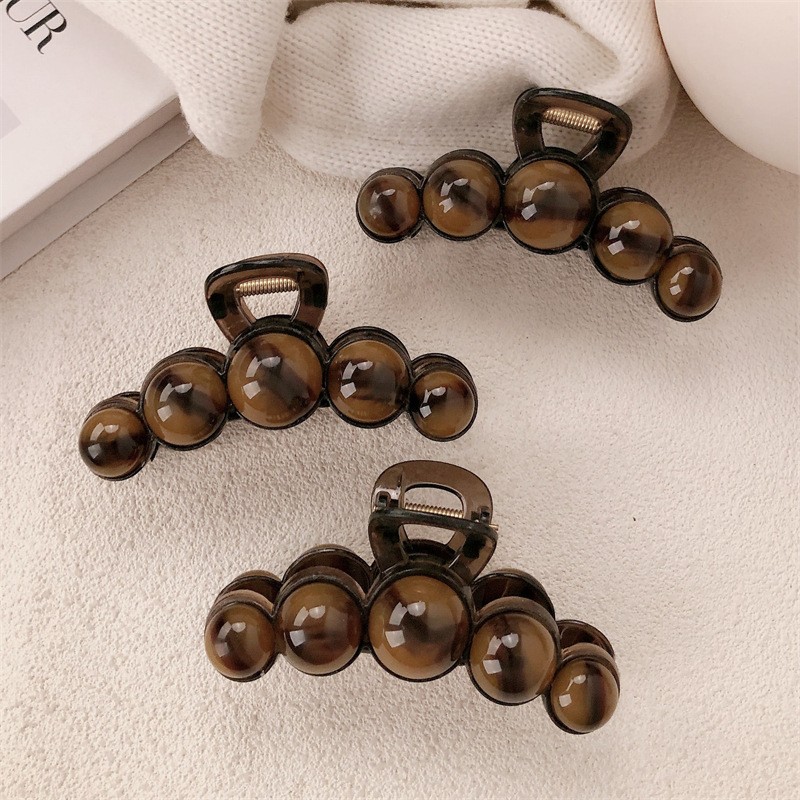 Краб для волос с большими коричневыми бусинами, 10,5 см.