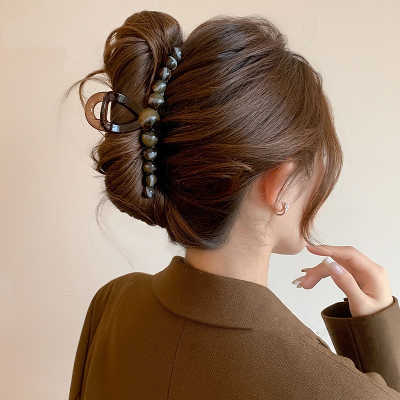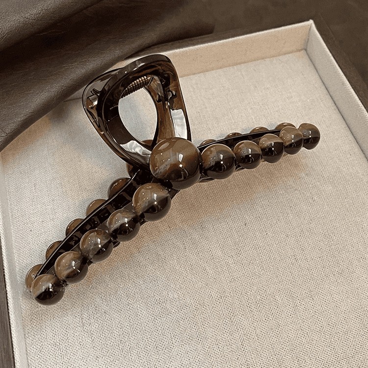 Краб для волос с коричневыми бусинами, 13 см.