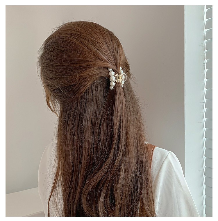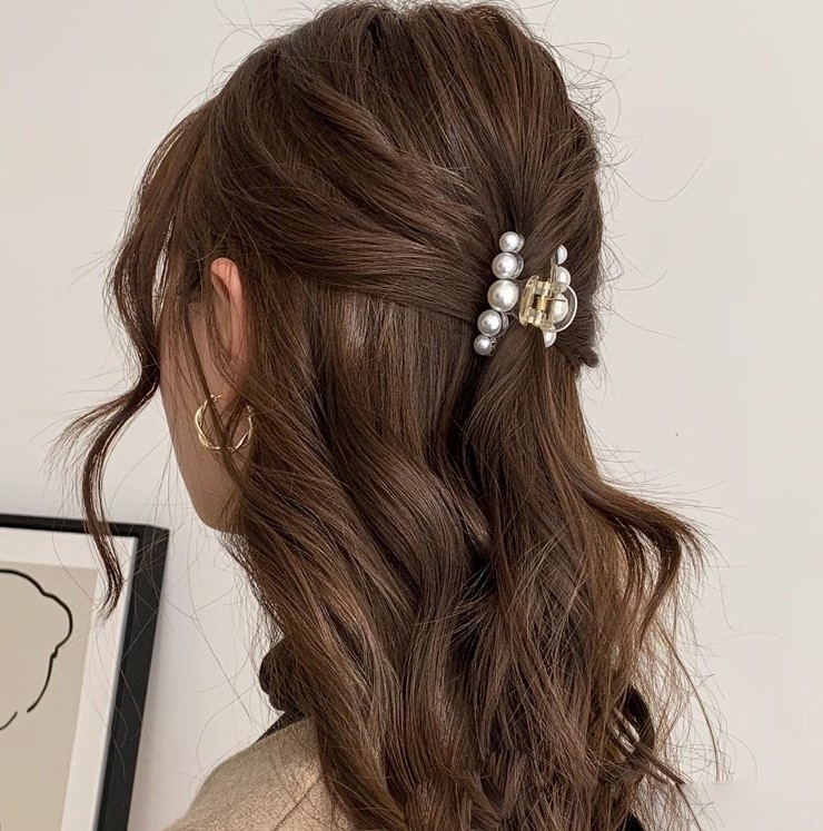 Заколки-крабики для волос маленькие пластиковые из бусин в виде жемчуга - милые и красивые женские аксессуары для создания прически.
