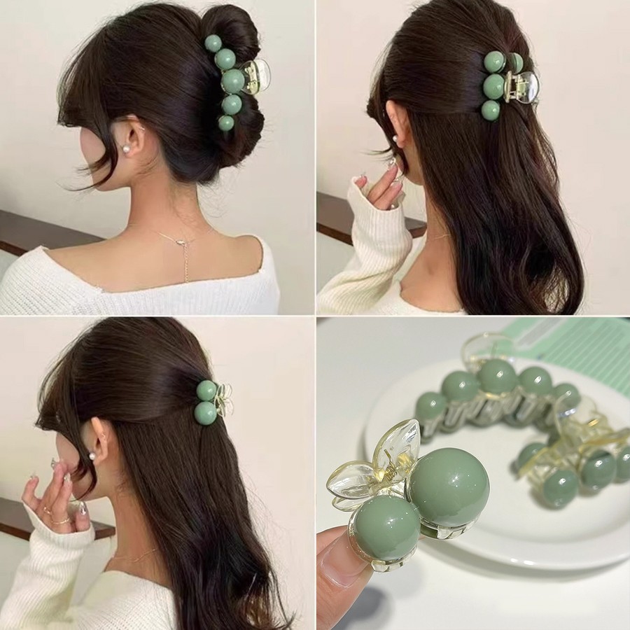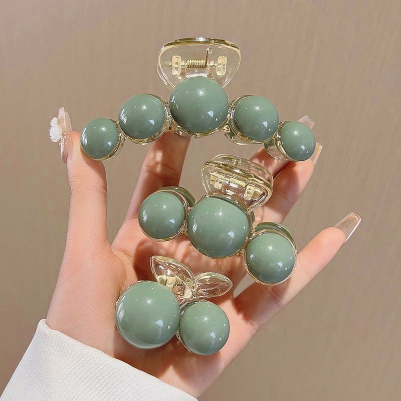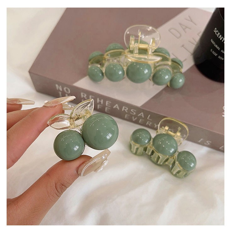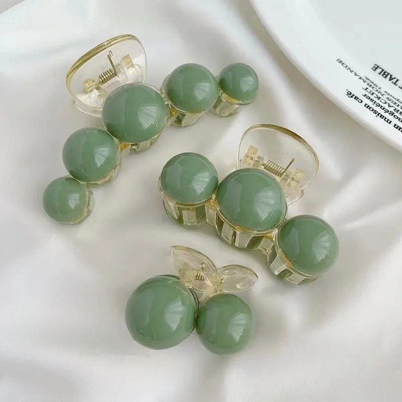 Набор крабов для волос 3 штуки с зелеными бусинами