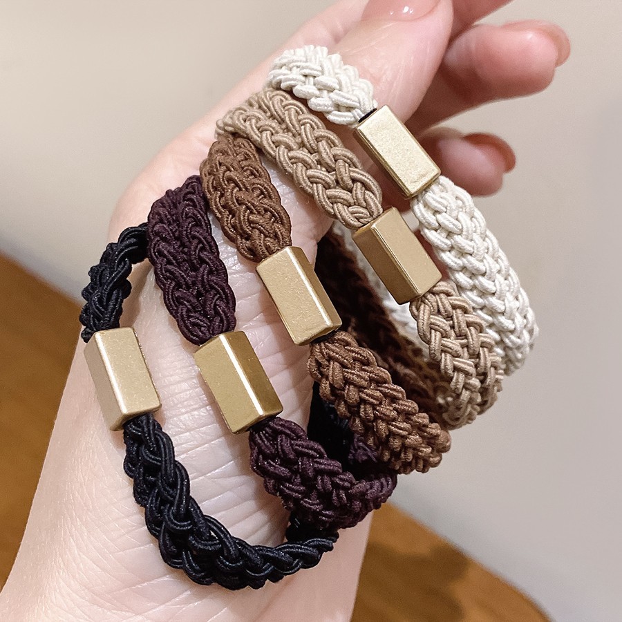Набор плетеных резинок для волос с прямоугольной бусиной 5 штук