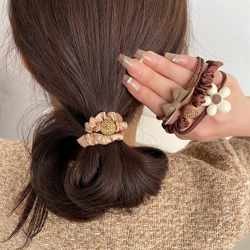 Набор резинок для волос с декором 7 шт. Бежево-Коричневые