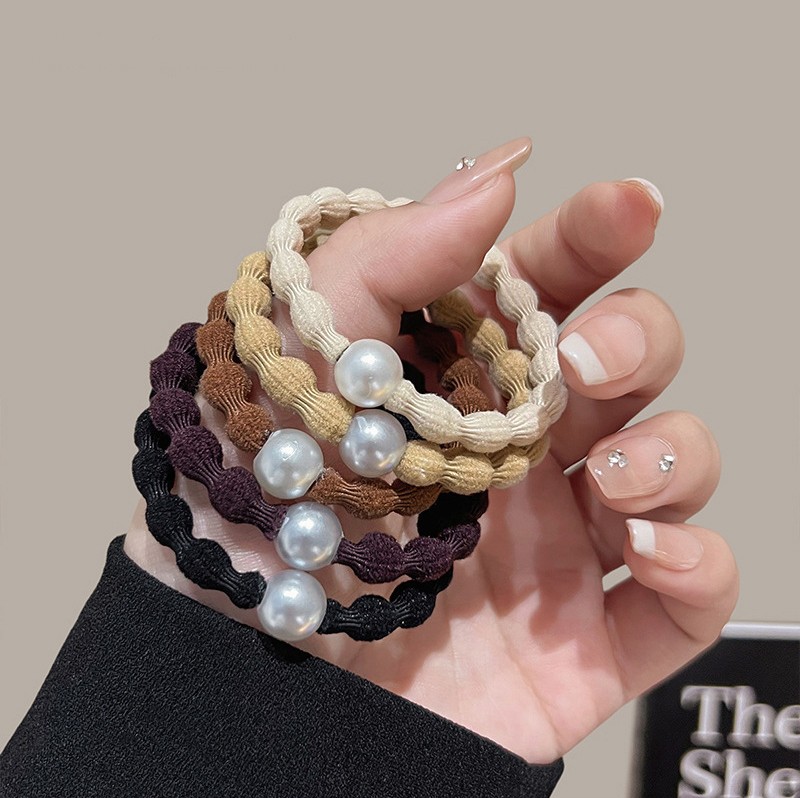 Набор резинок для волос волнистые с жемчужной бусиной 5 штук