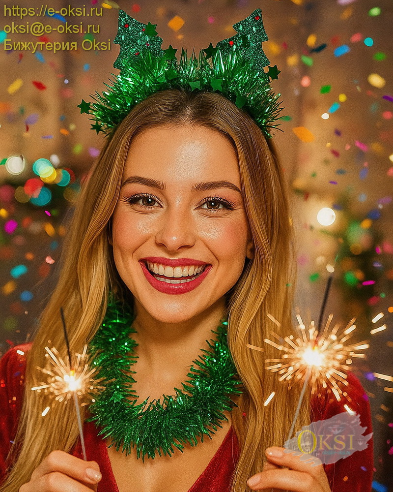 Эффектный новогодний ободок с яркими, зелёными ёлочками, создаст праздничную атмосферу на любой вечеринке. Подойдёт как взрослым. так и детям, не жмет и давит голову, не мешает вести активный образ жизни.