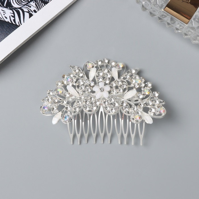 Гребень для волос QF «Джуди», цветочный, 8×6 см, серебро