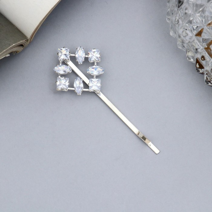 Невидимка для волос QF «Вивьен», куб, 5 см, серебро