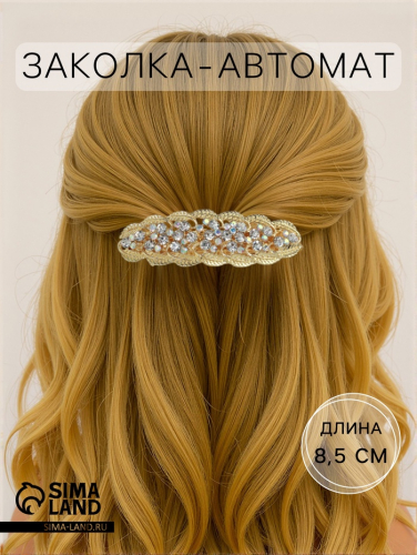 Укрась свои волосы с изяществом! Золотистая автоматическая заколка «Мия» – это эффектный аксессуар, который придаст вашему образу нотку роскоши. Выполненная из металла и стекла, она идеально подчеркнёт ваш стиль.