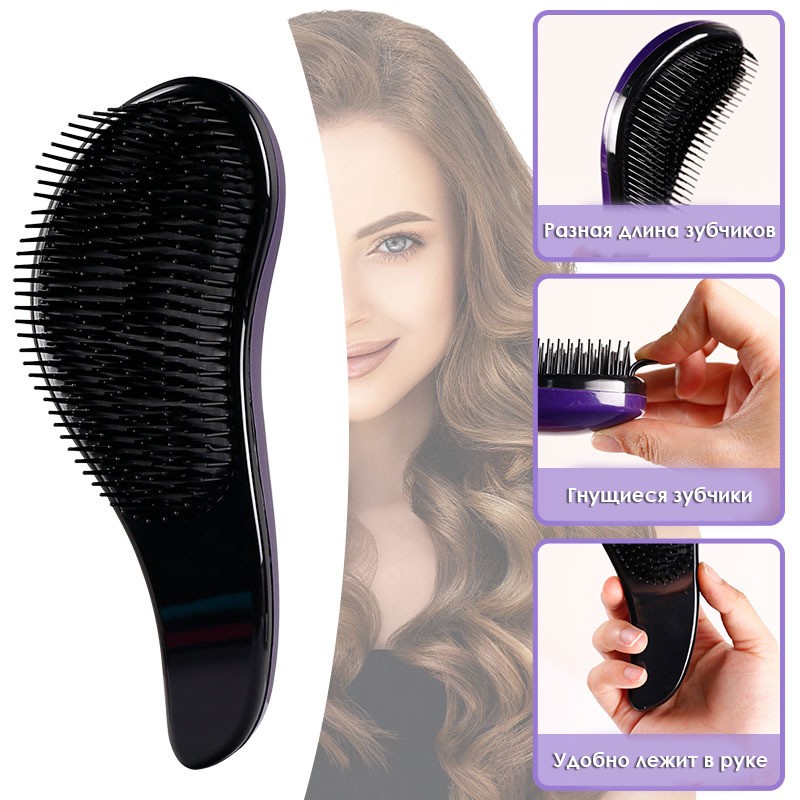 Расческа женская отлично справляется с прямыми или кудрявыми, сухими или мокрыми, детскими и взрослыми волосами. Бережно и быстро распутывает даже самые сухие и ломкие волосы, не повреждая и не травмируя их.