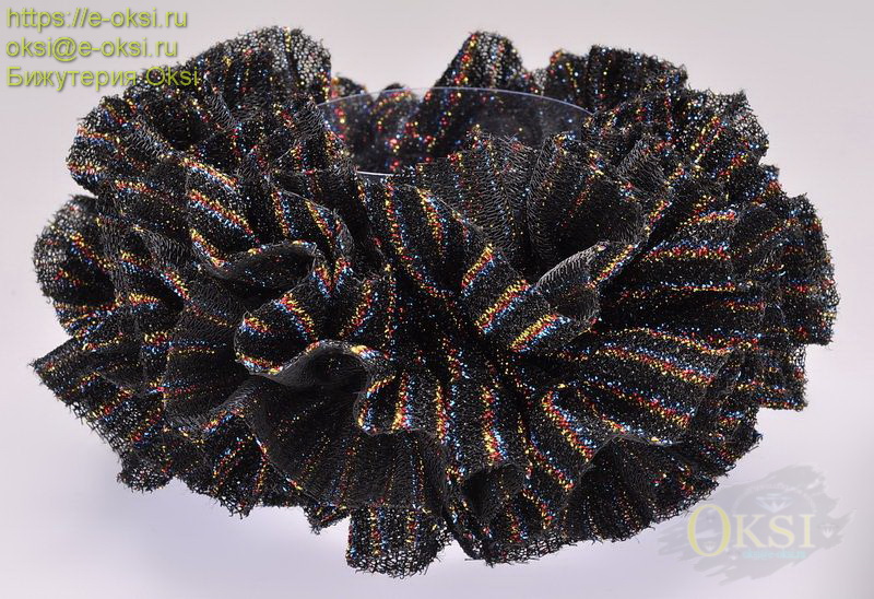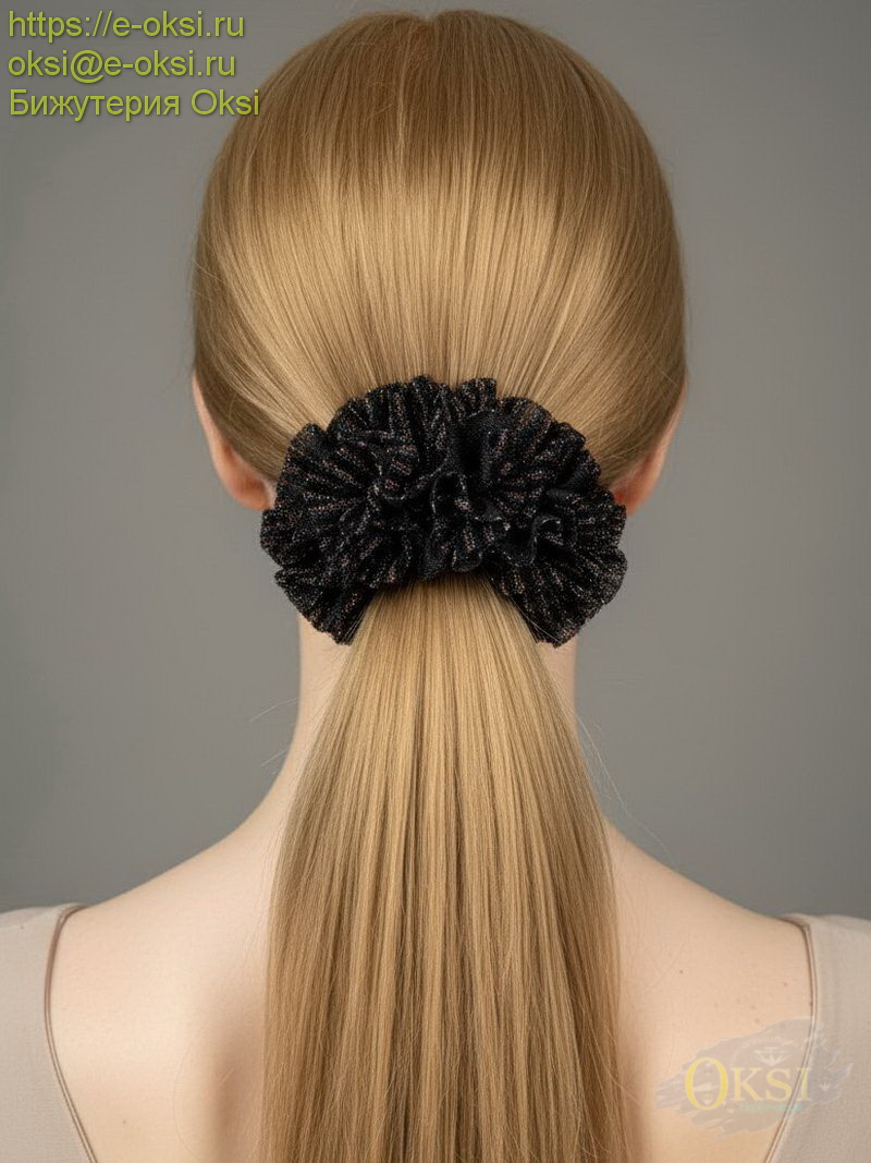 Крупная, объёмная резинка для волос, украшена блестящими люрексовыми нитями. Диаметр 12см